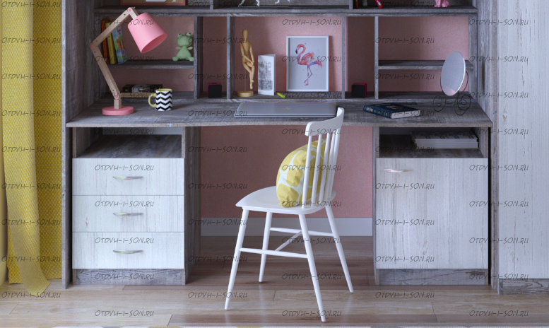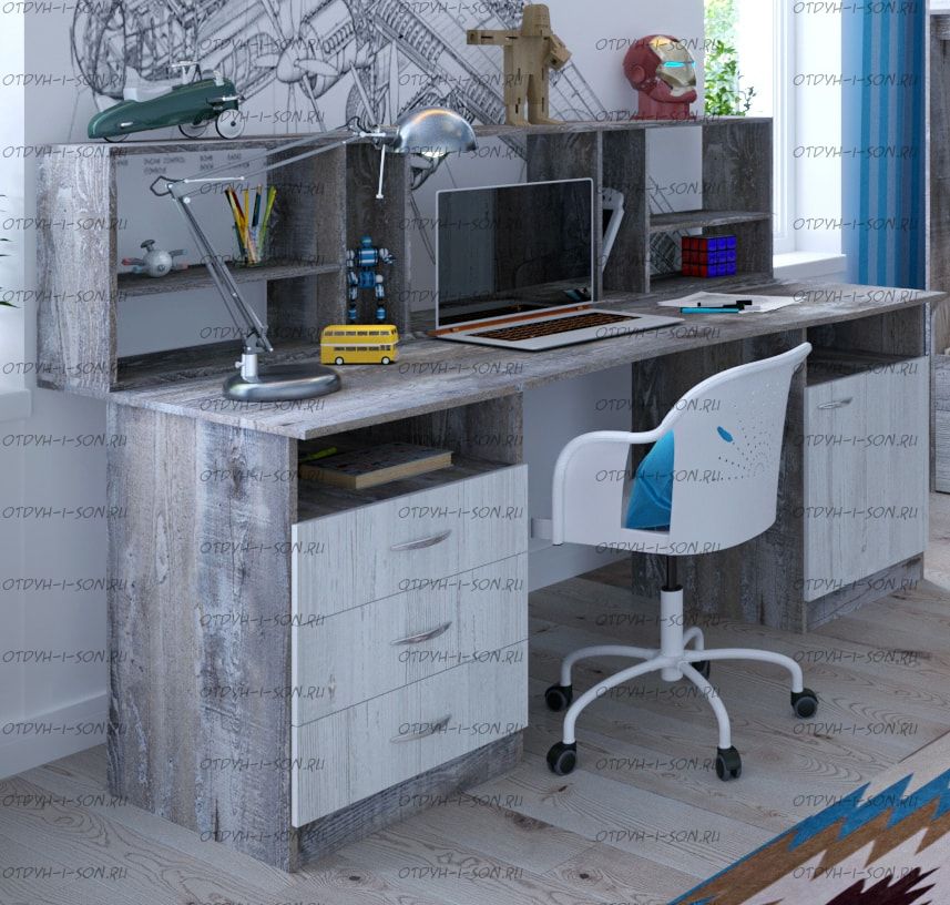 Стол письменный с надстройкой Юта от фабрики Ярофф. Характеристики: Габаритные размеры (ШхГхВ): 1932х832х1200 мм. Цвета корпуса: Бетон – Винтерберг Матрац можно отдельно заказать также на нашем сайте