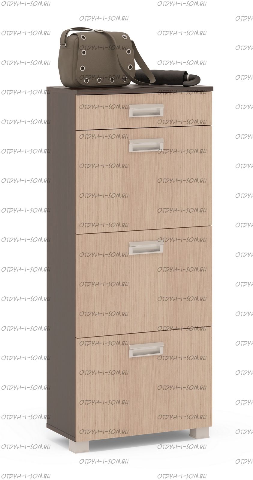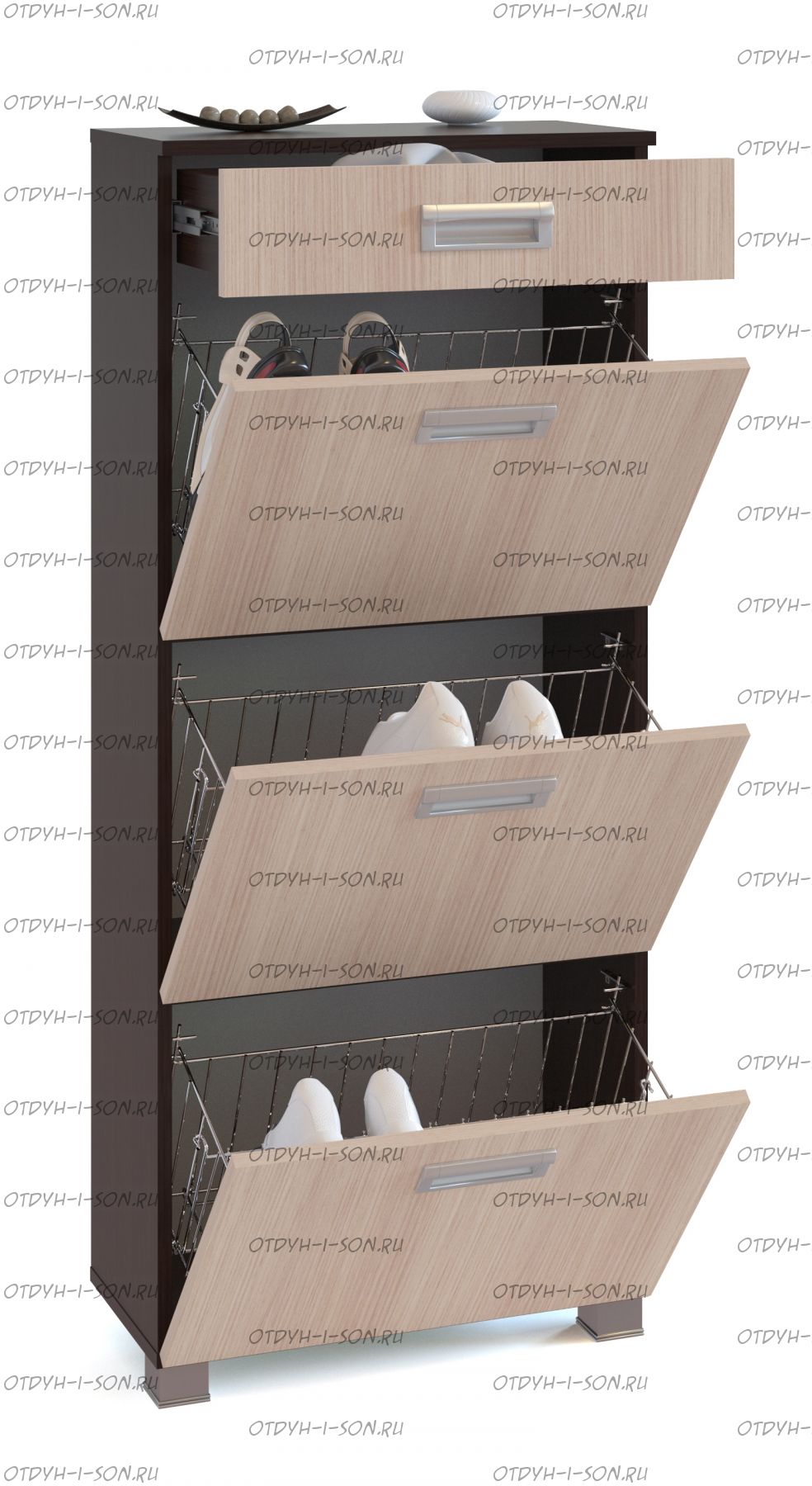 Тумба для обуви ТО-3М Характеристики: Габаритные размеры (ШхГхВ): 580х290х1350 мм. Материалы: ЛДСП 16 мм. Цвета : Венге/Дуб млечный