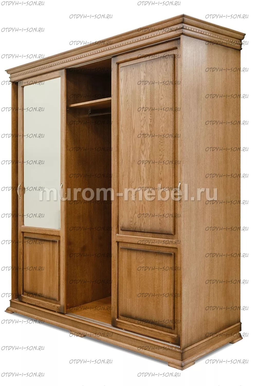 Шкаф купе Флоренция Характеристики: Внешние габариты (ШхГхВ): 210х60х220 см Материал: массив дерева Цвета: венге 1, венге 2, венге 3, венге 4, венге тон 2, коричневый тон 2, коричневый 1, коричневый 2, коричневый 3, коричневый 4, красно-коричневый тон 2, красно-коричневый 1, красно-коричневый 2, красно-коричневый 3, красно-коричневый 4, лак Стоимость в цветах Белая эмаль, Слоновая кость, Выбеленный дуб, Венге перламутровый и Красный +25% к стоимости изделия.