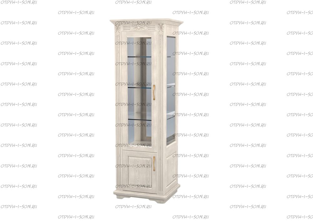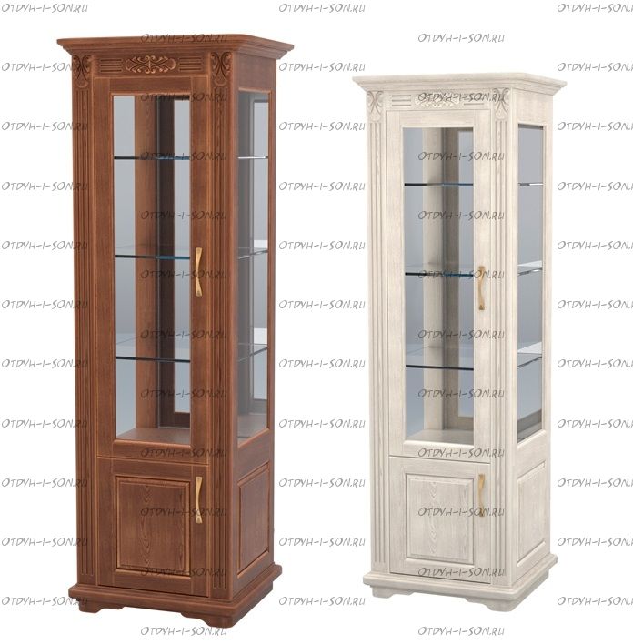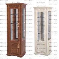 Шкаф-витрина 1-дверный Палермо Массив DreamLine (71х54х220) Характеристики: Внешние габариты (ШхГхВ): 71х54х220 см Материал: массив бука, массив ясеня Цвет массива бука: слоновая кость, груша, орех, орех патина, орех мокко,старая вишня, красное дерево, каштан, венге, олива, серый. Цвет массива ясеня: белый, белый серая патина, белый золотая патина, слоновая кость, беленый дуб, дуб сономо, натуральный ясень,натуральный дуб, груша, пинотекс, дуб золотой, орех, орех мокко, старая вишня, красное дерево, каштан, венге серебряная патина, венге. За цвета из массива ясеня: натуральный ясень, груша, беленый дуб – прибавляется 10% к стоимости, белый золотая патина, венге серебряная патина, белый серая патина – 15% За цвета из массива бука: груша, натуральный бук, беленый дуб - прибавляется 10% к стоимости, орех патина - 15%