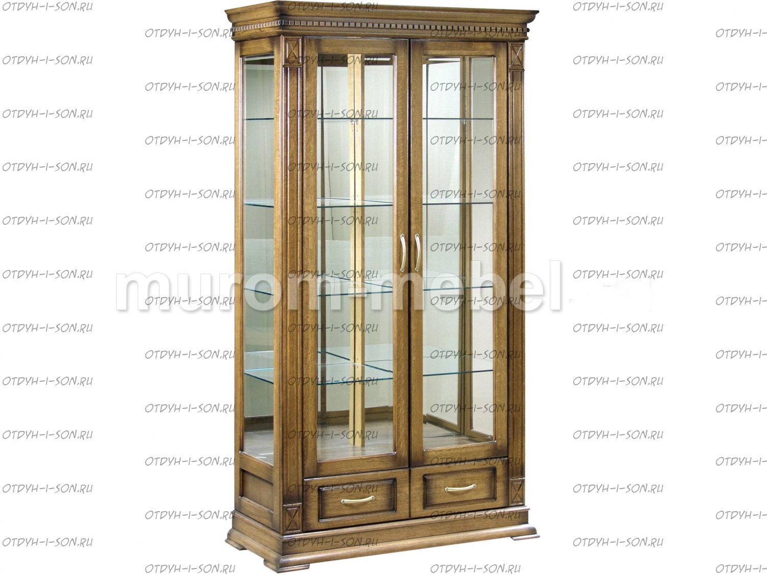 Шкаф-витрина 2-дверный Флоренция-1. (ШхГхВ): 1000х400х2000 Производство Владимирской мебельной фабрики, доставляется напрямую от производителя, самовывоза нет. Двойной шкаф Флоренция-1 – изделие из натуральных материалов с парой распашных створок, выдвижными ящиками и прозрачными фасадами. Основные элементы конструкции изготовлены из массива сосны, надежного и долговечного дерева. Значительную часть конструкции занимает стекло, из которого сделаны дверцы, боковые грани и полки. Задняя стенка с внутренней стороны оснащена зеркалом, зрительно расширяющим систему наполнения.