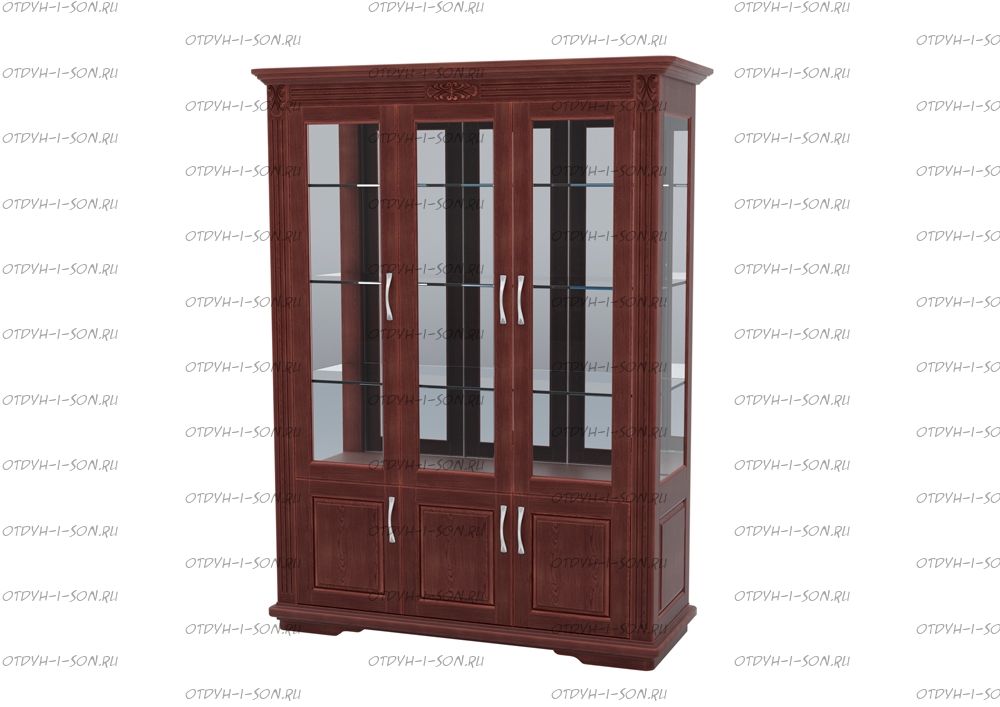 Шкаф-витрина 3-дверный Палермо Массив DreamLine Характеристики: Внешние габариты (ШхГхВ): 161х54х220 см Материал: массив бука, массив ясеня Цвет массива бука: слоновая кость, груша, орех, орех патина, орех мокко,старая вишня, красное дерево, каштан, венге, олива, серый. Цвет массива ясеня: белый, белый серая патина, белый золотая патина, слоновая кость, беленый дуб, дуб сономо, натуральный ясень,натуральный дуб, груша, пинотекс, дуб золотой, орех, орех мокко, старая вишня, красное дерево, каштан, венге серебряная патина, венге. За цвета из массива ясеня: натуральный ясень, груша, беленый дуб – прибавляется 10% к стоимости, белый золотая патина, венге серебряная патина, белый серая патина – 15% За цвета из массива бука: груша, натуральный бук, беленый дуб - прибавляется 10% к стоимости, орех патина - 15%