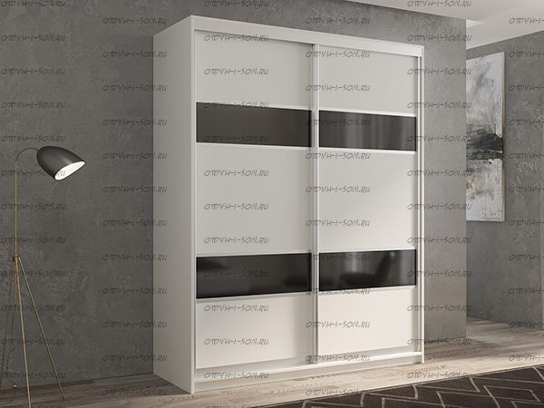Шкаф-купе двухдверный Кааппи 7 Характеристики: Дверь 1: ЛДСП/Стекло Lacobel черное Дверь 2: ЛДСП/Стекло Lacobel черное