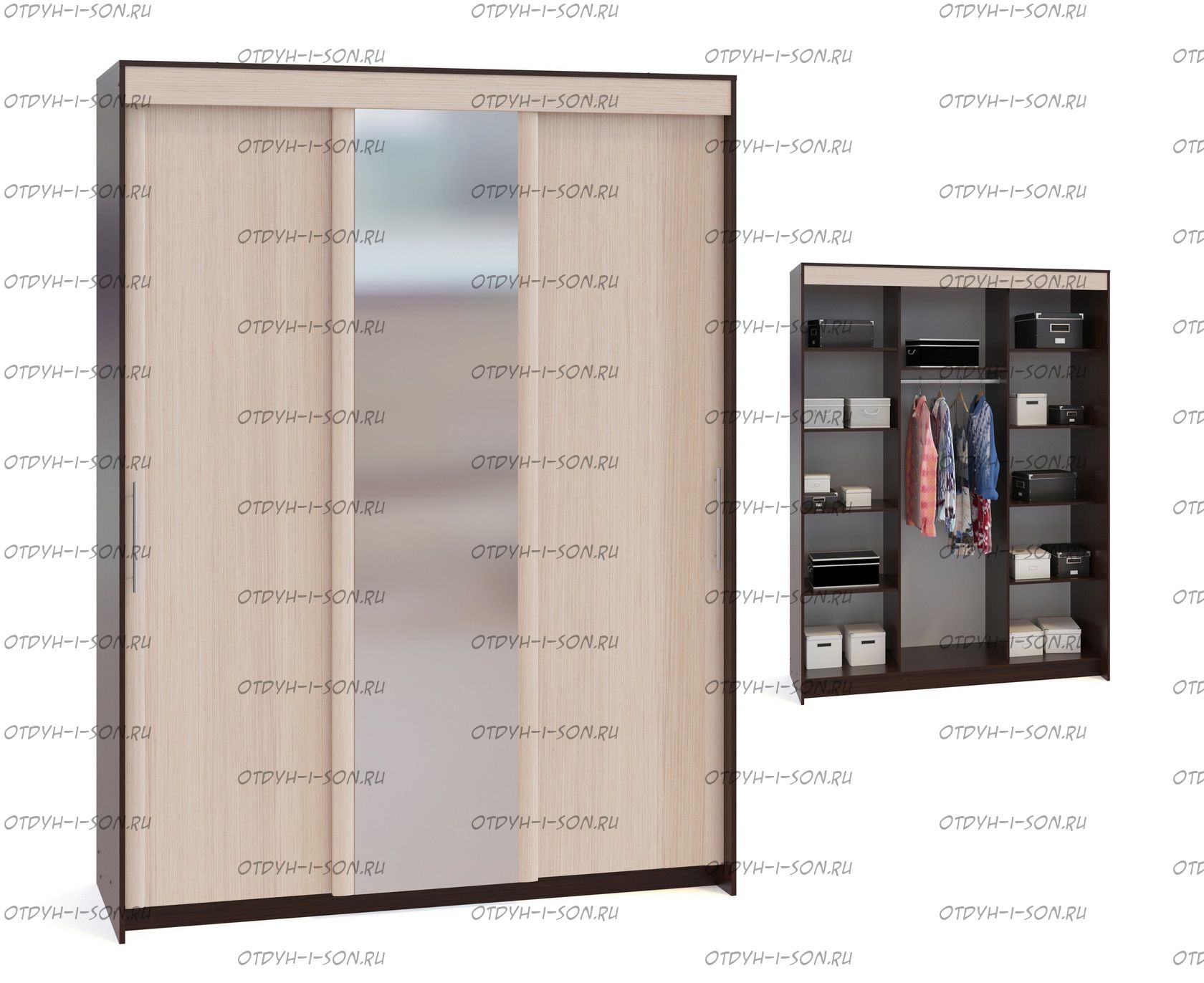 Шкаф-купе Контур ШР-186.31 Характеристики: Габаритные размеры (ШхГхВ): 1800х600х2400 мм. Материалы: ЛДСП 16 мм. Цвета : Венге, Дуб млечный