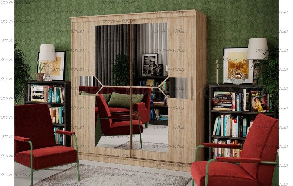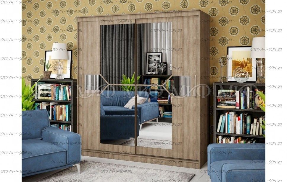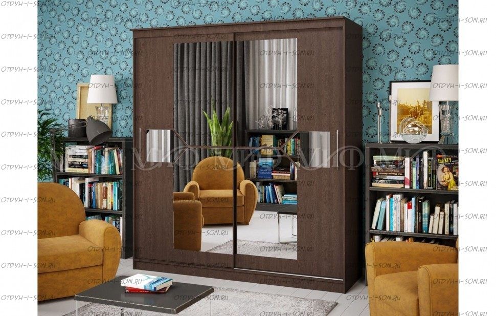 Шкаф-купе Элегант — это современная модель для хранения вещей. Шкаф изготовлен из ЛДСП, на дверях зеркальные витражные вставки. Великолепная стильная модель для вашей квартиры представлена размерной линейкой: ширина 1500, 1700 и 2000 мм.