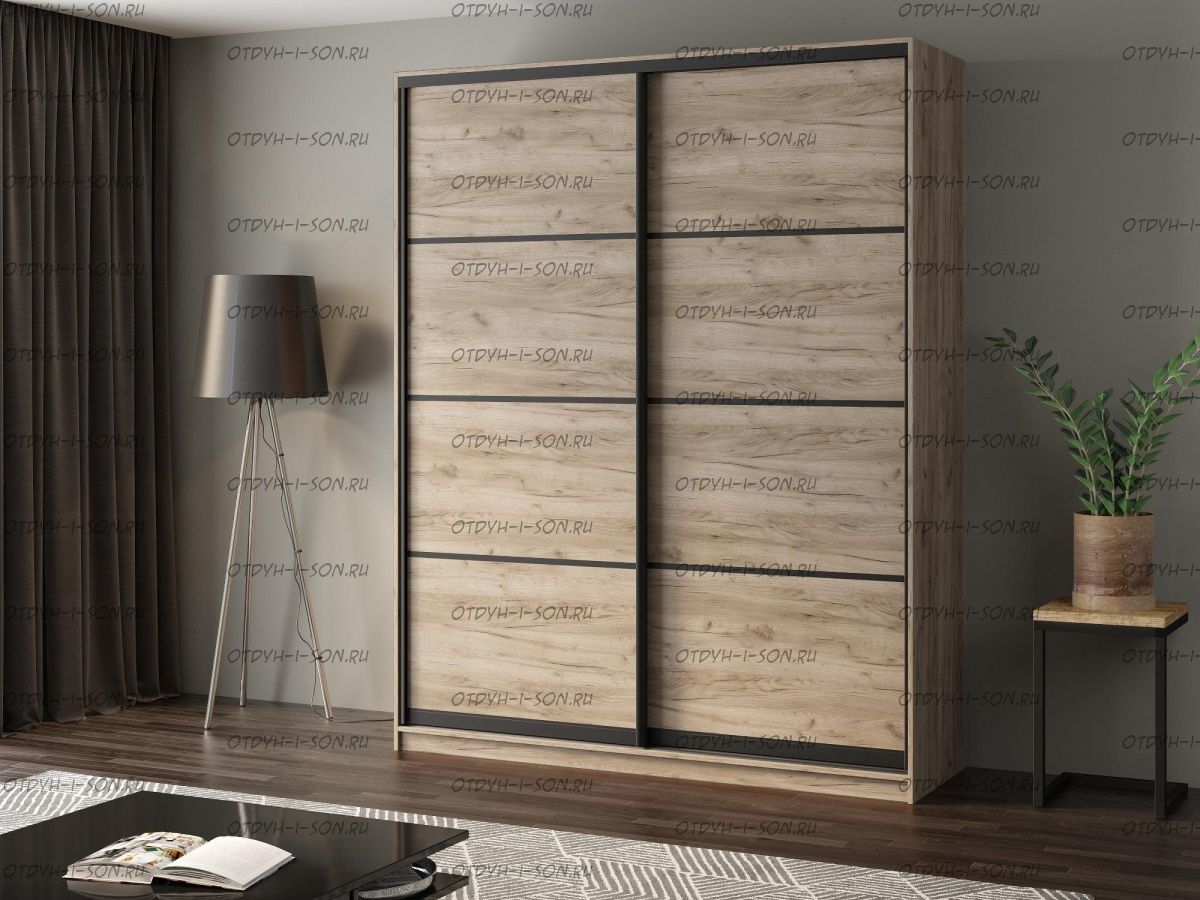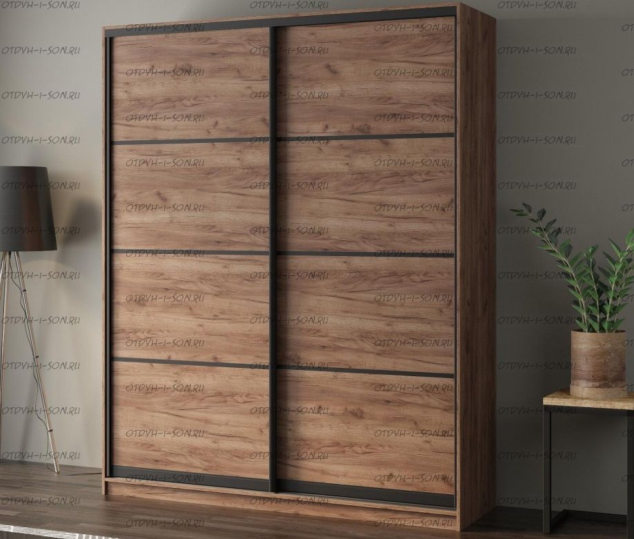 Шкаф-купе 2-х дверный Лофт 180 может быть выполнен в нескольких вариантах размеров и цветов и с различными типами фасадов. Характеристики: Внешние габариты (ШхГхВ): 180 х 58 х 240 см. Материалы каркаса: ЛДСП Вес: Цвет на выбор: дуб крафт табак, дуб крафт серый, дуб крафт серый/бетон серый, дуб крафт табак/бетон темный