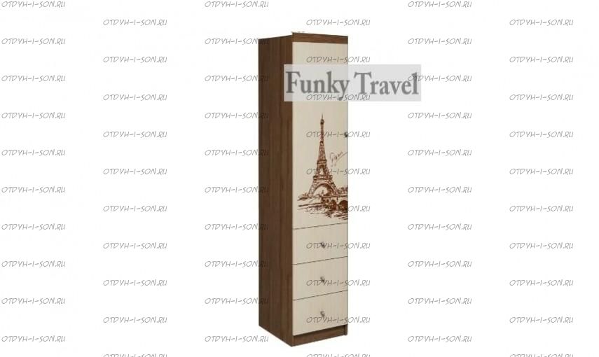 Шкаф-пенал с ящиками Тревел ФТР/ПР-04. Пенал ФКР-04 для детских вещей Фанки Тревел - это отдельный элемент из серии модульной мебели Фанки Тревел. Эта мебель создана не только для детских комнат, но порадует и подростков. Материал производства - австрийское ламинированное ДСП (толщина 16 мм) от фабрики Эггер, кромка ПВХ - 2 мм толщина, металлическая фурнитура, пластмассовые ручки. Цвет корпуса - Дуб Шамони или Дуб Молочный.