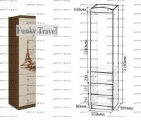 Шкаф-пенал с ящиками Тревел ФТР/ПР-04 Характеристики: Внешние габариты (ШхГхВ): 450х509х2130 мм. Материал: ЛДСП 16 мм (Австрия, Egger). Цвет корпуса: Дуб Шамони, Дуб Молочный