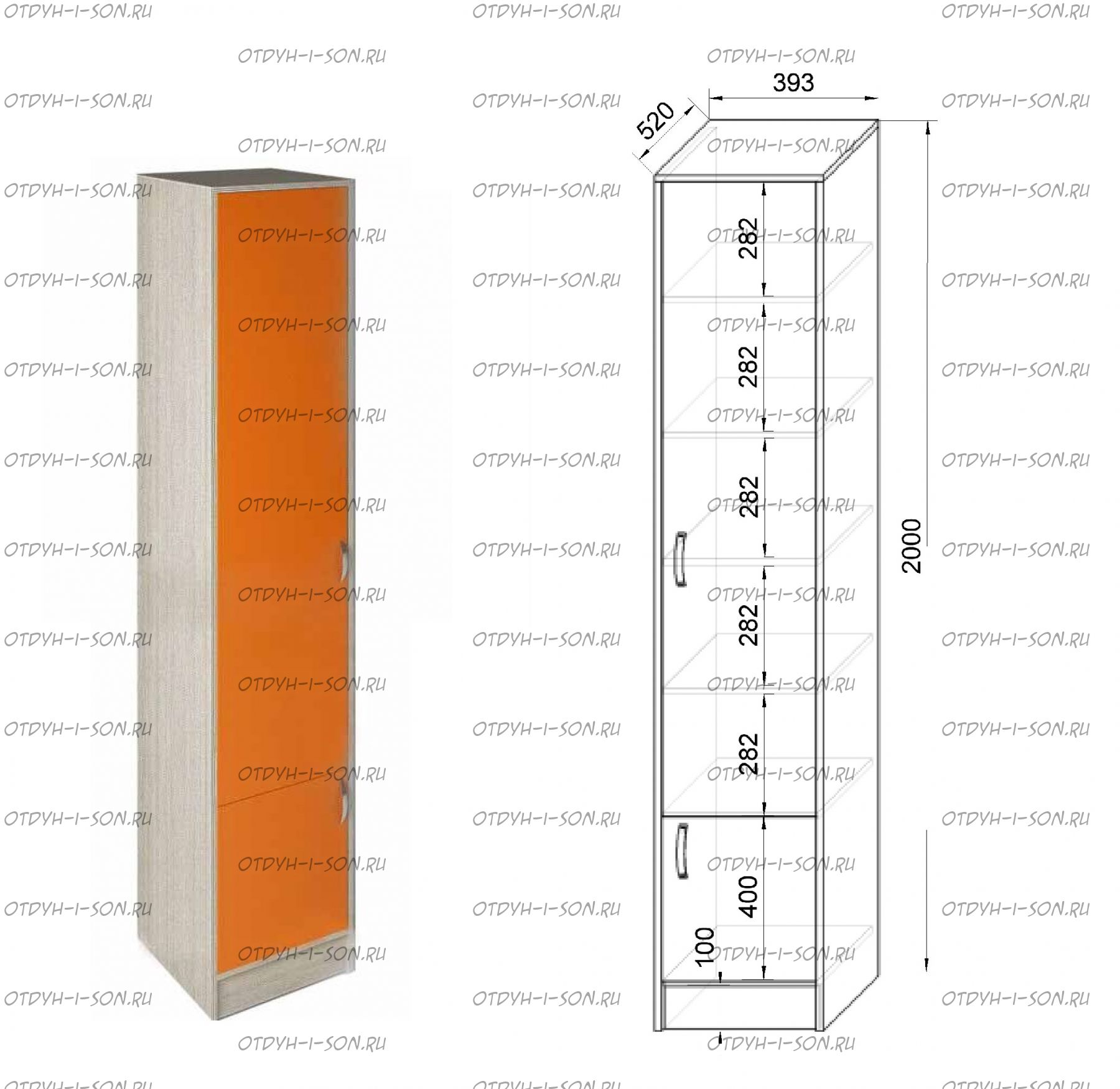Шкаф 1-но дверный Фанки Кидз 13/10 СВ Характеристики: Внешние габариты: 393х520х2000 Материал: ЛДСП 16 мм (Австрия, Egger). Вес: 48 кг. Объем: 0,03 м3 Цвет корпуса: ольха, дуб кремона, венге, орех Цвет фасада: розовый, крем ваниль, оранжевый, зеленый, голубой, венге, дуб кремона, ольха, орех