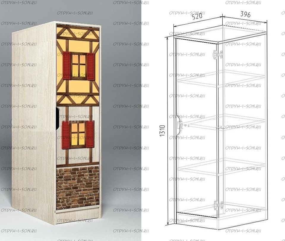 Шкаф 2-дверный + шкаф-пенал Фанки Кидз Домик Комплектация: Шкаф двухдверный с ящиками Фанки Кидз, 750х520х2000 мм. Антресоль к двухдверным шкафам Фанки Кидз, Ширина 795/750 х Глубина 52/42 х Высота 398 мм. Шкаф-пенал низкий Фанки Кидз Домик, арт. 23/5 (ШхГхВ): 396х520х1310 мм. Антресоль Фанки Кидз СВ-13/74 Характеристики: Внешние габариты вместе с крышей (ШхГхВ): 122/1150х520х2400 мм. Вес: Объем: Материал: ЛДСП 16 мм (Австрия, Egger). Цвет: любые или Дуб Кремона + уф-фотопечать