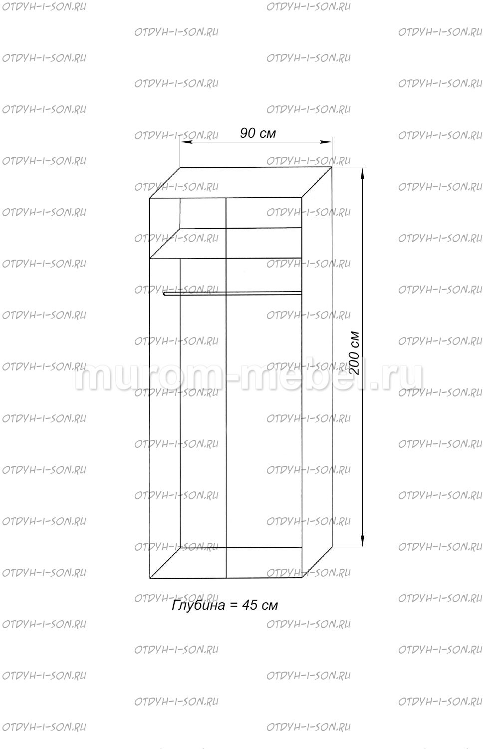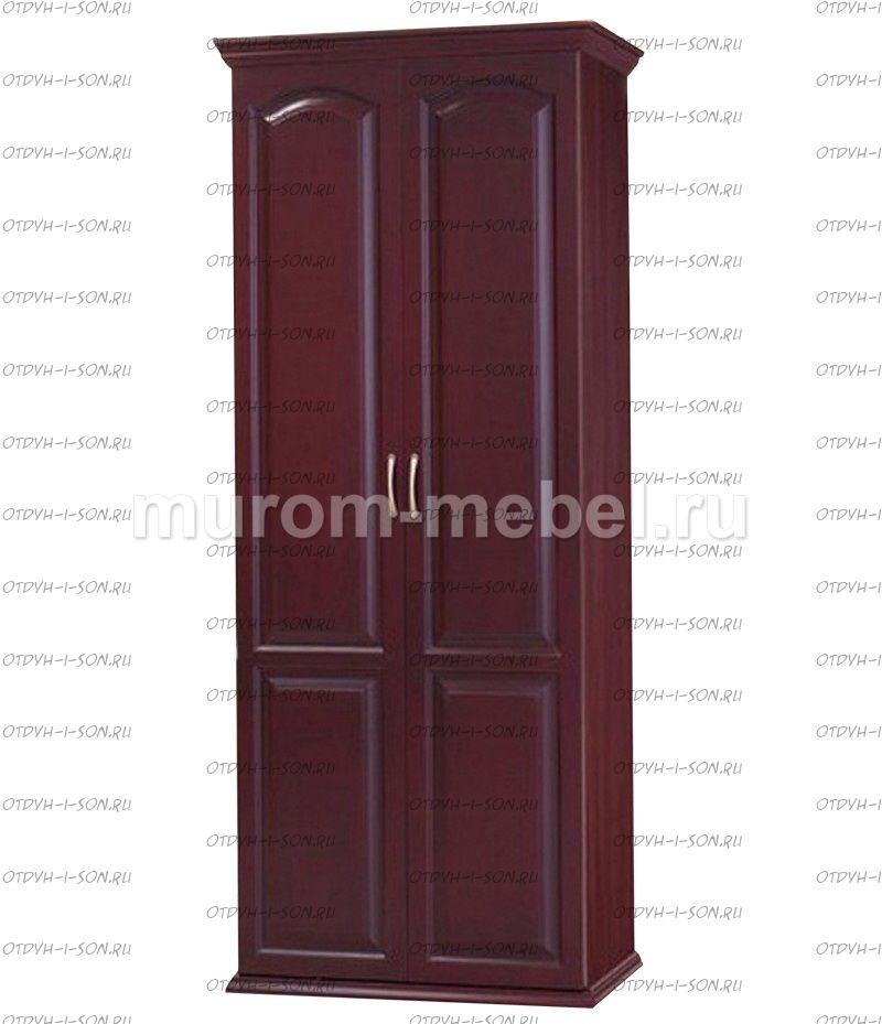 Шкаф 2-дверный Элегия Характеристики: Внешние габариты (ШхГхВ): 900х550х2200 мм. Материал: массив дерева Цвета: венге 1, венге 2, венге 3, венге 4, венге тон 2, коричневый тон 2, коричневый 1, коричневый 2, коричневый 3, коричневый 4, красно-коричневый тон 2, красно-коричневый 1, красно-коричневый 2, красно-коричневый 3, красно-коричневый 4, лак Стоимость в цветах Белая эмаль, Слоновая кость, Выбеленный дуб, Венге перламутровый и Красный +25% к стоимости изделия.