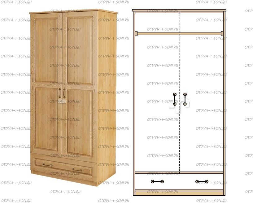 Шкаф 2-дверный ECO-16 Характеристики: Внешние габариты (ШхГхВ): 900х450х1900 мм. Материал: массив дерева Цвета: венге 1, венге 2, венге 3, венге 4, венге тон 2, коричневый тон 2, коричневый 1, коричневый 2, коричневый 3, коричневый 4, красно-коричневый тон 2, красно-коричневый 1, красно-коричневый 2, красно-коричневый 3, красно-коричневый 4, лак Стоимость в цветах Белая эмаль, Слоновая кость, Выбеленный дуб, Венге перламутровый и Красный +25% к стоимости изделия.
