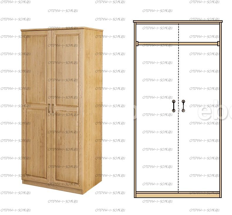 Шкаф 2-дверный ECO-4 Характеристики: Внешние габариты (ШхГхВ): 800х450х1900 мм. Материал: массив дерева Цвета: венге 1, венге 2, венге 3, венге 4, венге тон 2, коричневый тон 2, коричневый 1, коричневый 2, коричневый 3, коричневый 4, красно-коричневый тон 2, красно-коричневый 1, красно-коричневый 2, красно-коричневый 3, красно-коричневый 4, лак Стоимость в цветах Белая эмаль, Слоновая кость, Выбеленный дуб, Венге перламутровый и Красный +25% к стоимости изделия.
