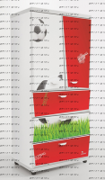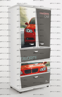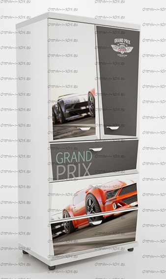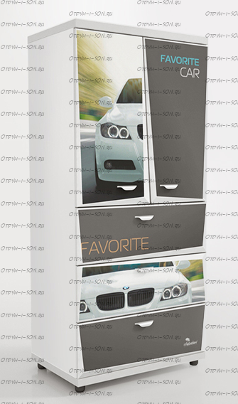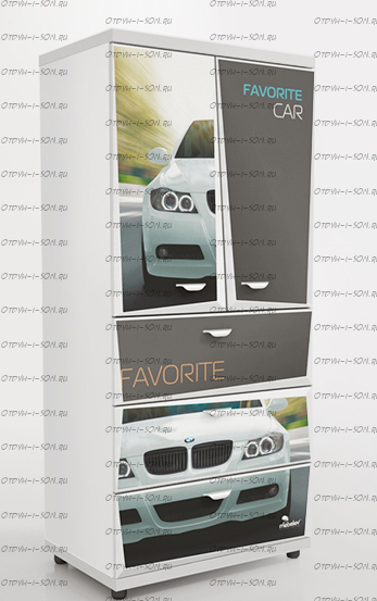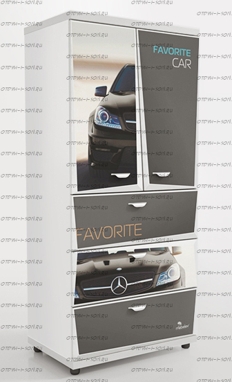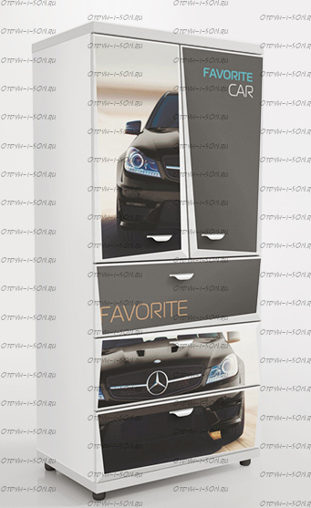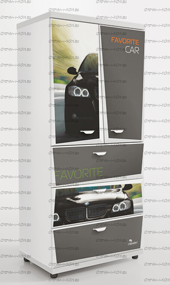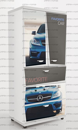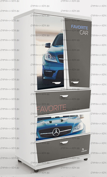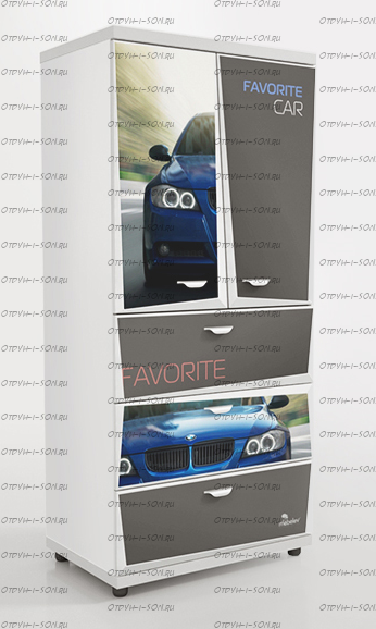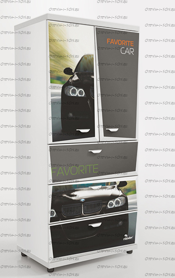 Шкаф 2-х дверный Z5 Мебелев (800х500х1770) Характеристики: Внешние габариты (ШхГхВ): 800х500х1770 мм Две распашные дверцы Три выдвижных ящика Роликовые направляющие Объемный 3D рисунок на пленке покрыт защитной ламинацией Материал: ЛДСП 16 мм, 32 мм (верхняя и нижняя панель) Цвет: белый, красный, синий, черный Наполнение 2-х дверного шкафа: 2 полки штанга