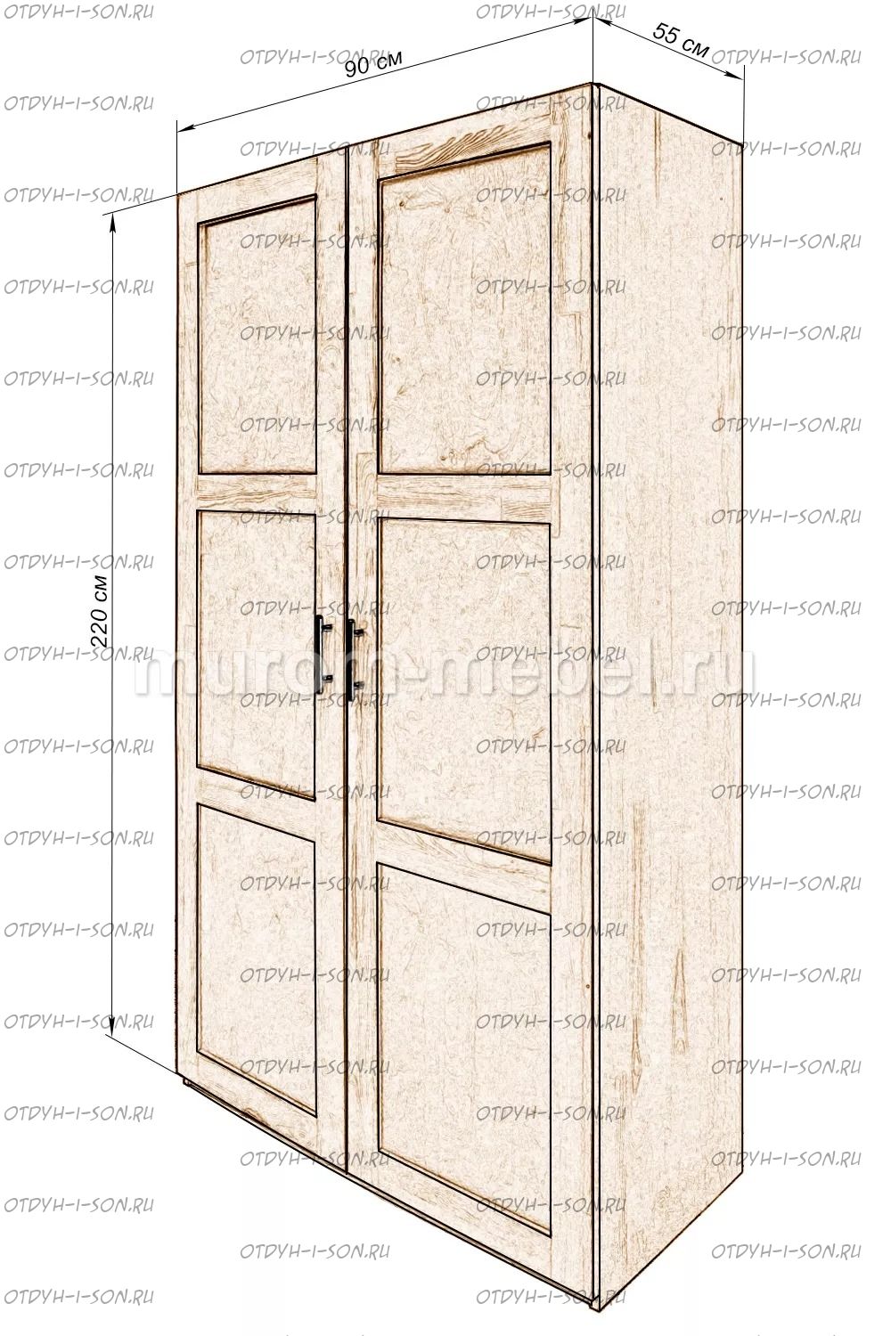 Шкаф 2-х створчатый Марко Характеристики: Внешние габариты (ШхГхВ): 900х550х2200 мм Материал: массив дерева Цвета: венге 1, венге 2, венге 3, венге 4, венге тон 2, коричневый тон 2, коричневый 1, коричневый 2, коричневый 3, коричневый 4, красно-коричневый тон 2, красно-коричневый 1, красно-коричневый 2, красно-коричневый 3, красно-коричневый 4, лак Стоимость в цветах Белая эмаль, Слоновая кость, Выбеленный дуб, Венге перламутровый и Красный +25% к стоимости изделия.