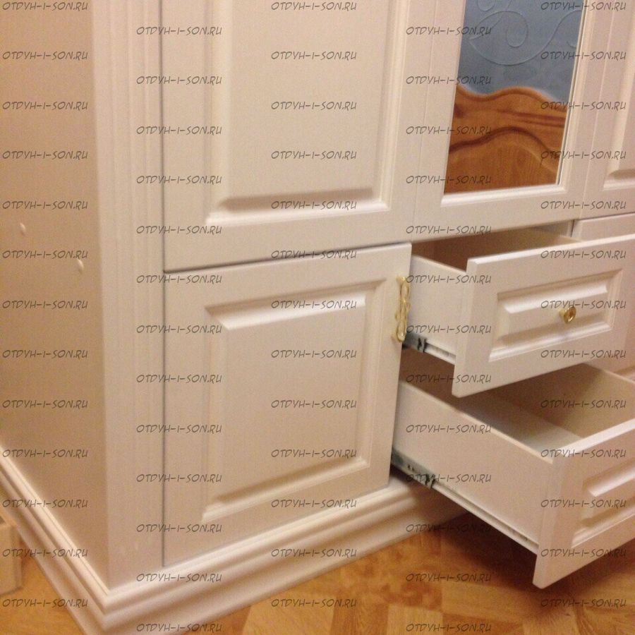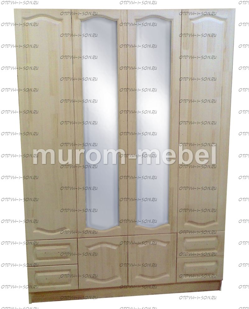 Шкаф 4-дверный с нижней антресолью Характеристики: Внешние габариты (ШхГхВ): 1800х550х2400 мм. Материал: массив дерева Цвета: венге 1, венге 2, венге 3, венге 4, венге тон 2, коричневый тон 2, коричневый 1, коричневый 2, коричневый 3, коричневый 4, красно-коричневый тон 2, красно-коричневый 1, красно-коричневый 2, красно-коричневый 3, красно-коричневый 4, лак Изготовление в белом цвете, фисташковый, слоновая кость плюс 25%