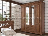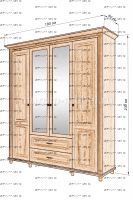 Шкаф 4-х створчатый Мелиса Характеристики: Внешние габариты: 1800x600х2300 Комбинированная мебель: Массив сосны и вставки из экологически чистой мебельной фанеры Крепления: Цвет: венге 1, венге 2, венге 3, венге 4, венге тон 2, коричневый тон 2, коричневый 1, коричневый 2, коричневый 3, коричневый 4, красно-коричневый тон 2, красно-коричневый 1, красно-коричневый 2, красно-коричневый 3, красно-коричневый 4, лак Изготовление из массива березы плюс 30% Изготовление в белом цвете или слоновая кость плюс 20%