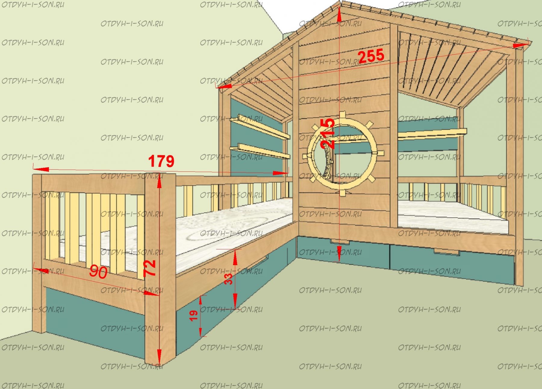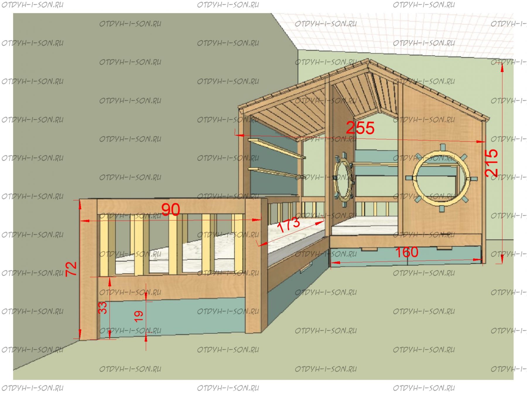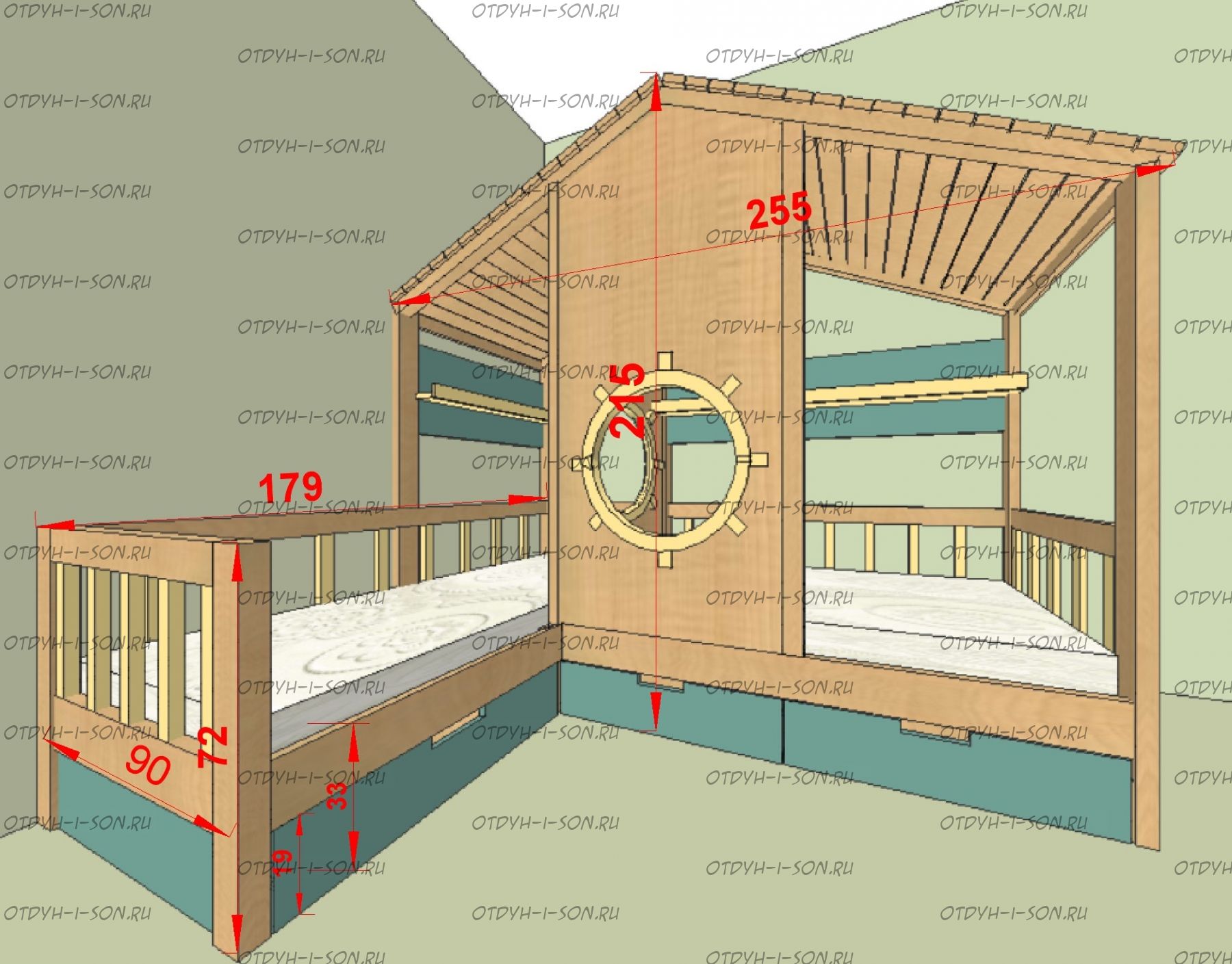 | Размеры изделия | Угловые домики по длинной стороне имеют следующие размеры: сумма длины и ширины двух спальных мест + 15 см. В случае ограниченного пространства в комнате просьба не считатьразмеры самостоятельно, а обратиться к нашим операторам. |