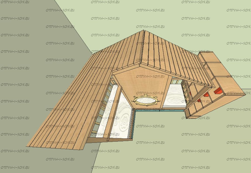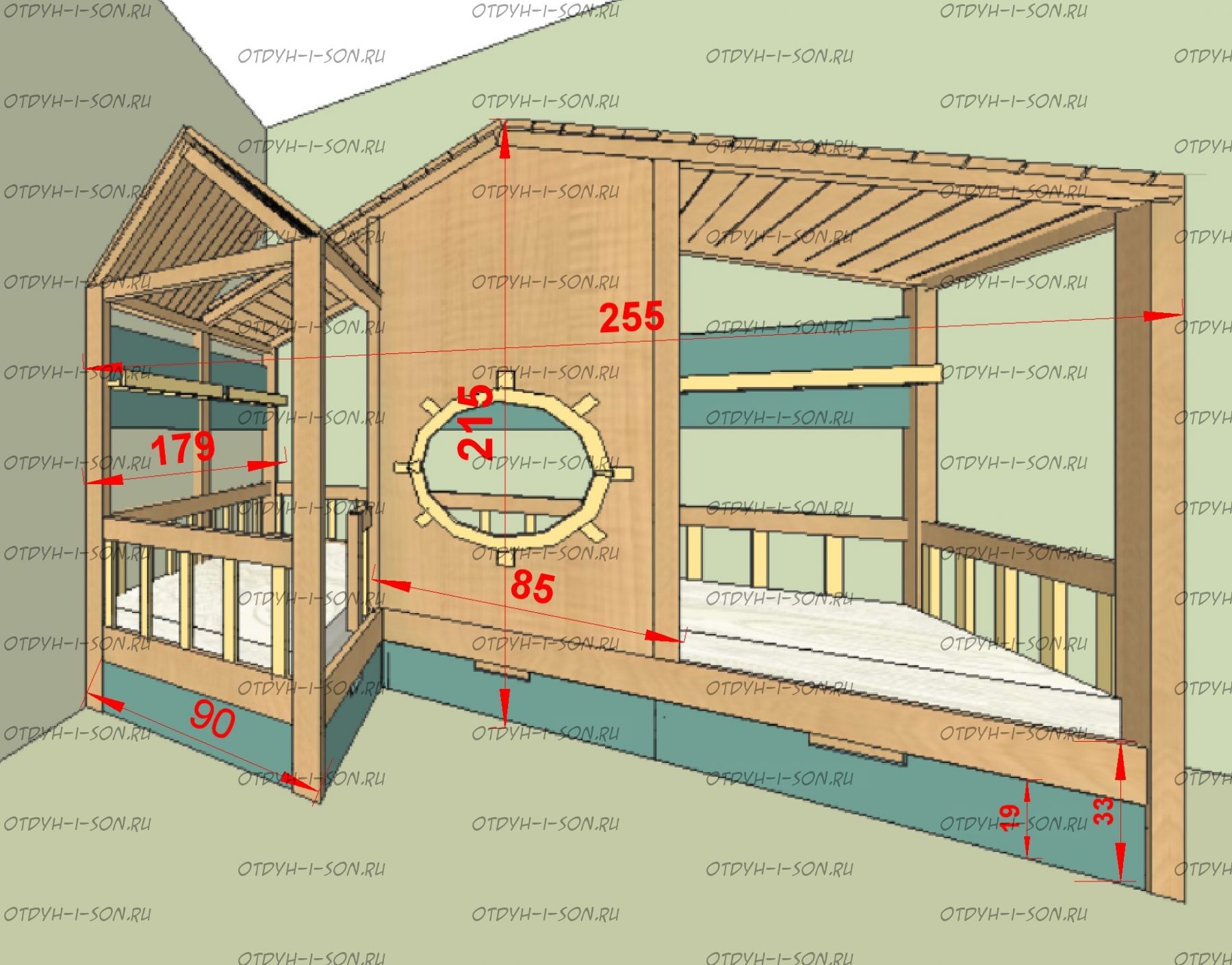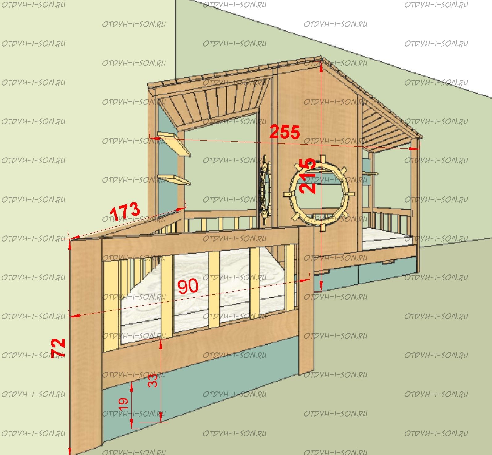 | Размеры изделия | Угловые домики по длинной стороне имеют следующие размеры: сумма длины и ширины двух спальных мест + 15 см. В случае ограниченного пространства в комнате просьба не считатьразмеры самостоятельно, а обратиться к нашим операторам. |