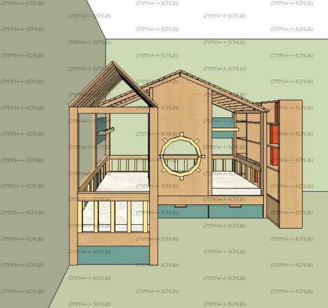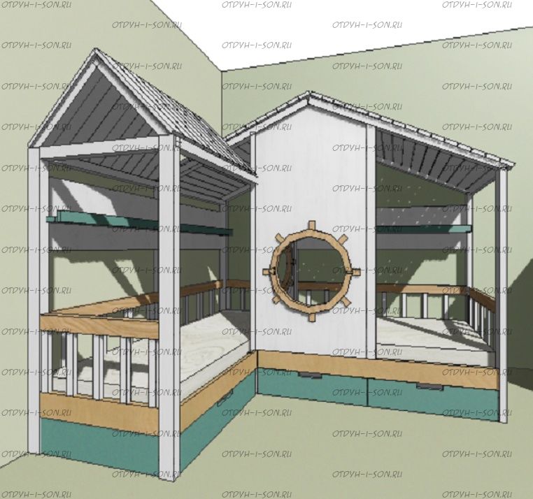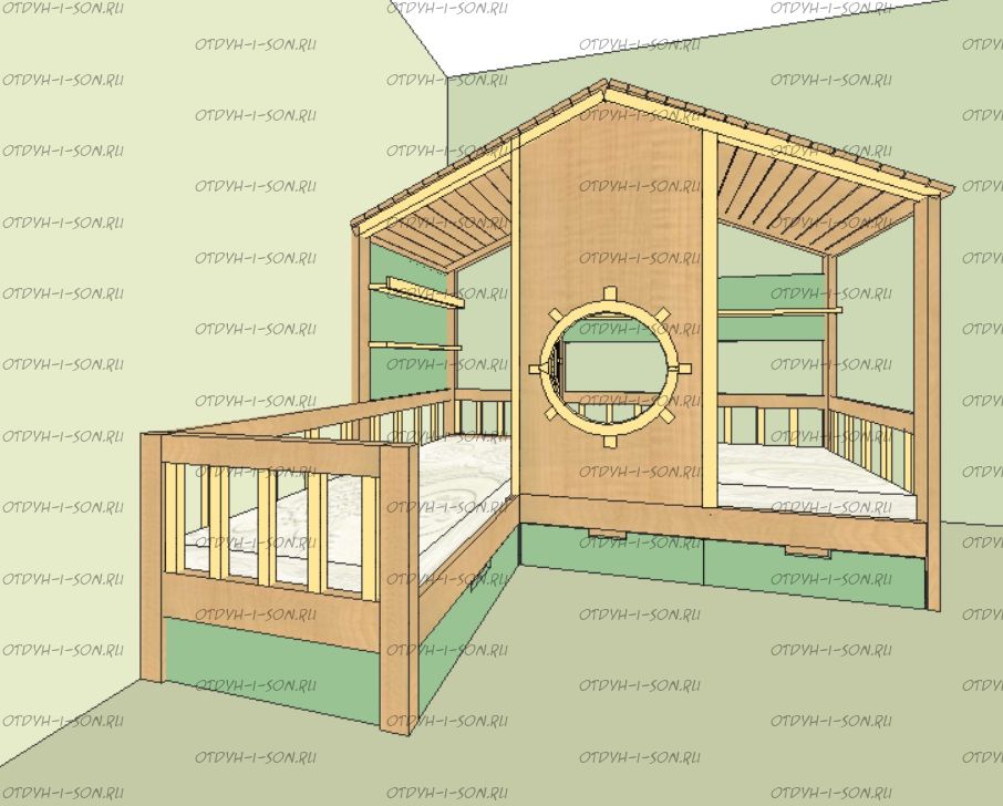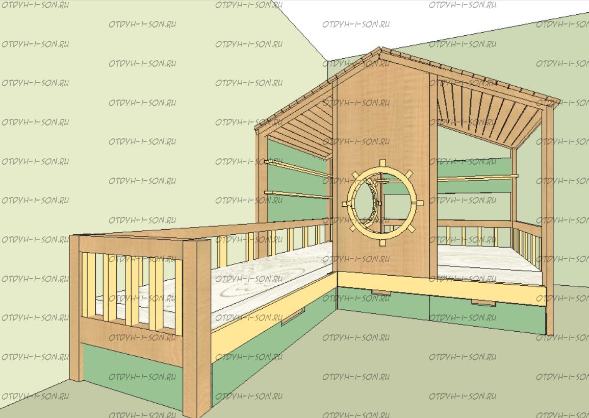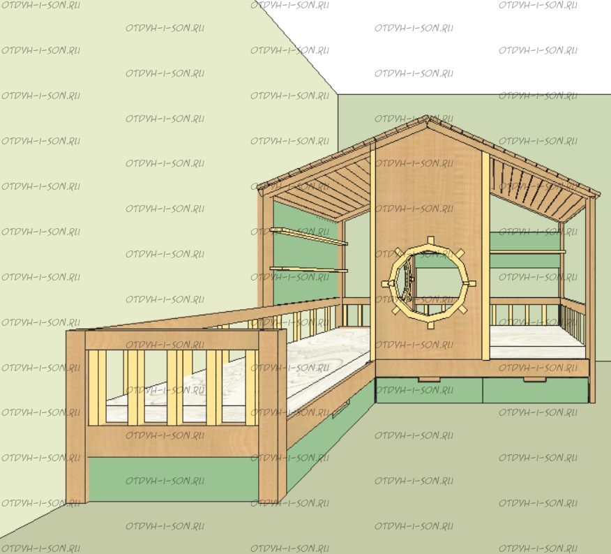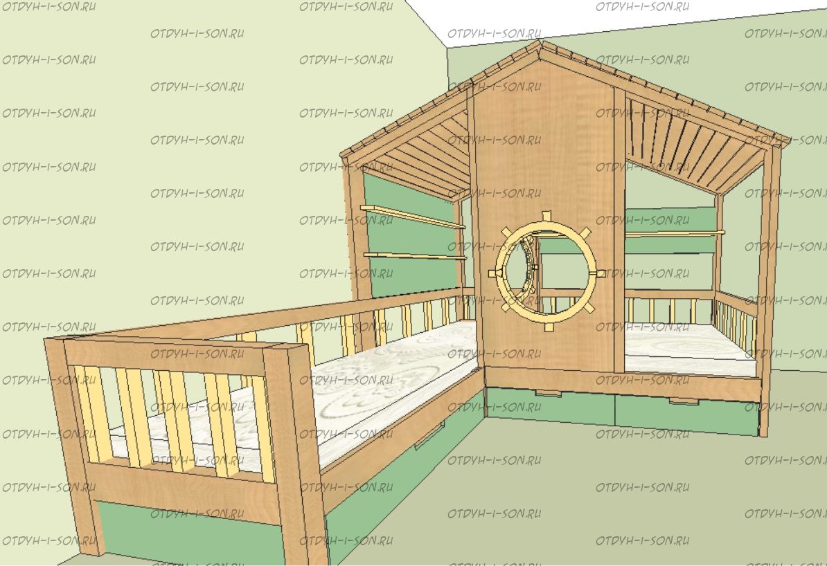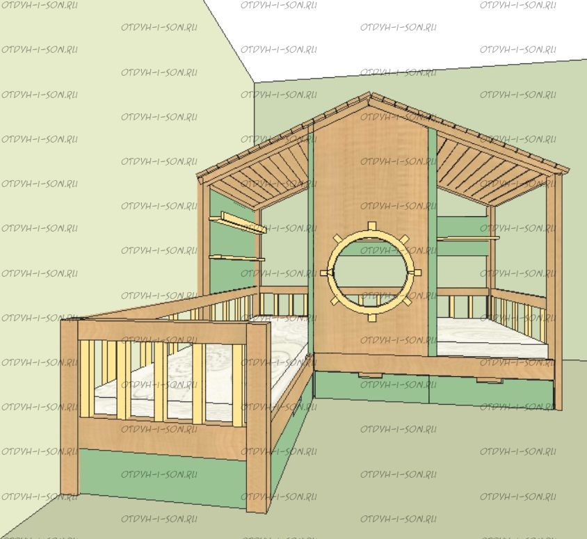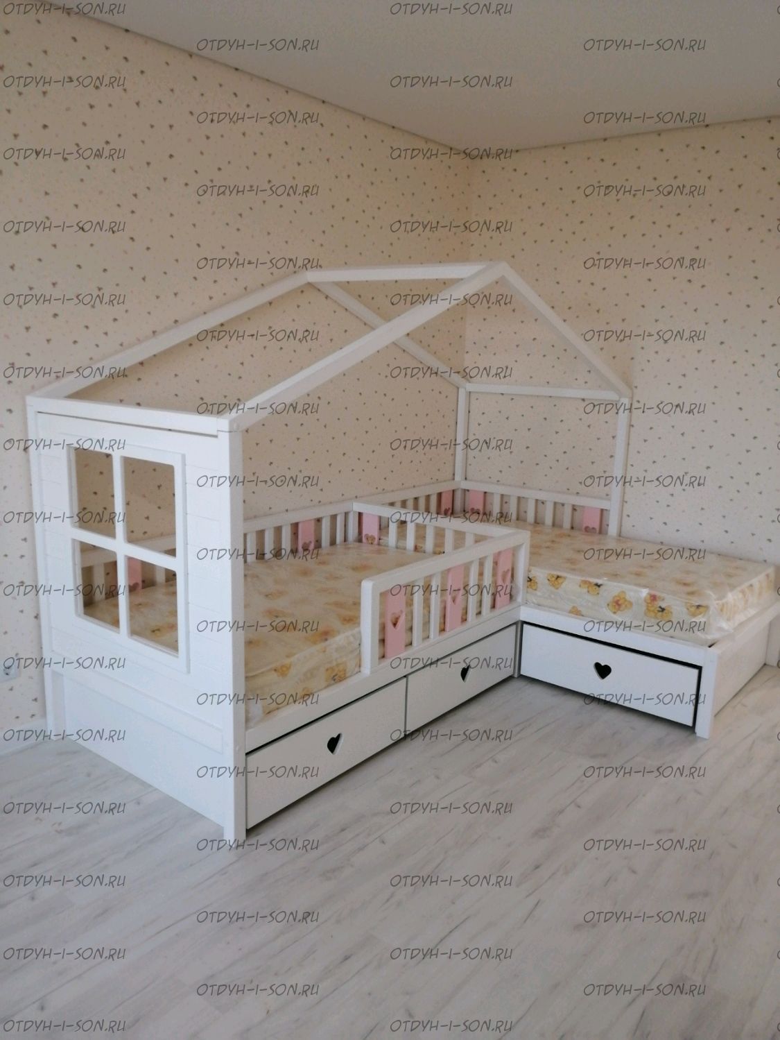 Кровать Домик угловой Fairy Land №58 - это угловая кровать домик для двоих детей.