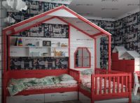 Данная кровать может быть выполнена с учетом любых Ваших пожеланий, мы изготавливаем данную угловую кровать домик с различными ящиками, полочками, бортиками или без них. Крышу кровати домика также можно сделать симметричной или ассиметричной при желании. Мы покрываем наши изделия только качественными, нетоксичными красками.