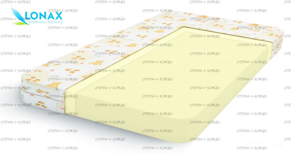 Детский без пружинный матрас Lonax Baby ППУ 10 (Лонакс Бэби) средней жесткости. В основе матраса монолитный блок высокоэластичного пенополиуретана (ППУ). Структура материала состоит из небольших ячеек. Он обладает высокой упругостью, прекрасно восстанавливает первоначальную форму и способен служить на протяжении многих лет. Кроме того, без пружинные ППУ матрасы правильно распределяют нагрузку по всей поверхности матраса, обеспечивая отличный анатомический эффект. Матрас поставляется в съемном чехле из надежной хлопковой ткани поликоттон. За ним легко ухаживать в домашних условиях, поскольку чехол матраса из поликоттона можно стирать в бытовой стиральной машине. Съемный чехол из поликоттона. Возможно изготовление матраса в чехле хлопковый жаккард.